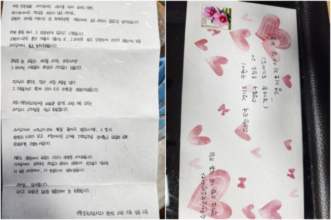 편지에는 “지사님께서 이루고자 하시는 일들이 도민의 삶을 바꾸는 변화를 넘어 하늘도 감동할 만큼 올곧은 의미 있는 결실로 이어지기를 바라며, 그 길이 흔들림 없이 이어지기를 진심으로 기도합니다.”라고 적혀 있다.