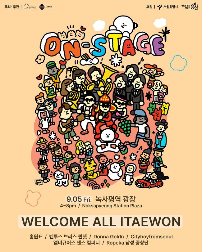 서울 용산구(구청장 박희영)는 오는 9월 5일(토) 오후 4시부터 8시까지 녹사평 광장에서 문화예술축제 '이태원, 다시 무대에 서다(ITAEWON, On-Stage)'를 개최한다. 2,000여명 규모로 열리는 이번 행사는 'Welcome All ITW'를 슬로건으로 내세워, 이태원의 다양성과 포용성을 문화예술로 담아낸다.