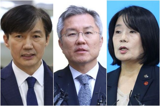 정부는 11일 ‘국민주권정부’ 출범 후 첫 특별사면을 발표하며 국민통합과 민생 회복을 핵심 목표로 제80주년 광복절 특별사면을 단행한다고 밝혔다. 사진 왼쪽부터 조국·윤미향·최강욱 전 국회의원