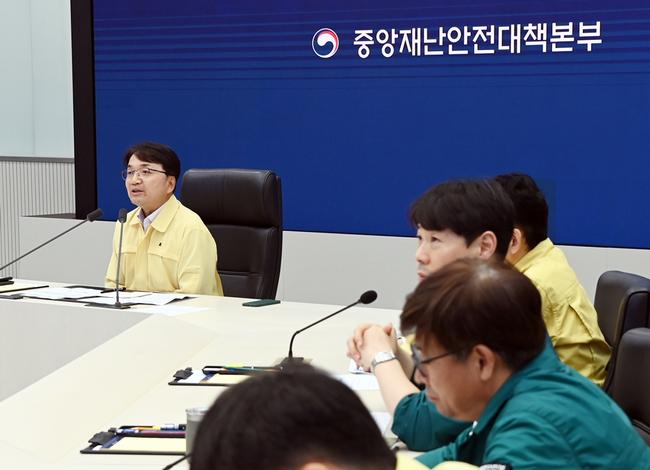 김광용 행정안전부 재난안전관리본부장이 5일 정부세종청사 중앙재난안전상황실에서 호우 대처 중대본 회의를 주재하고, 피해 최소화를 위한 8.6~7일 취약시간대 호우 대비 상황을 점검하고 있다.