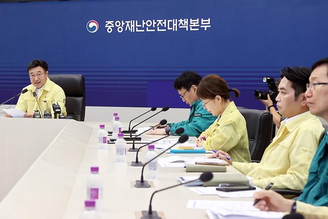 윤호중 행정안전부 장관이 지난 달 28일 오전 폭염 재난 상황 대응을 위한 중앙재난안전대책본부 회의를 주재하고 모두 발언을 하고 있다