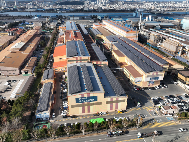 포스코스틸리온 전(全) 공장 지붕에 태양광 패널이 설치돼 있다