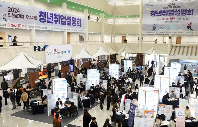인천광역시(시장 유정복)는 오는 9월 23일 시청 중앙홀에서 '2025 인천 청년 취업설명회'를 개최한다. 사진은 2024년 청년 취업설명회 모습.