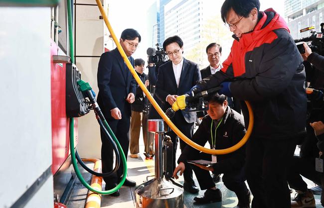 김정관 산업통상부 장관은 2026. 3. 13.(금) 11:40 서울시 마포구 도화동에 위치한 SK에너지 직영 주유소를 방문하여 관계자로부터 최근 석유 가격 동향을 청취한 후 석유제품 가격·품질·유통 검사를 참관한 후 “최적가격제 시행 이후 국민이 석유 가격 안정을 직접적으로 체감할 수 있도록 앞으로도 판매가격은 안정적으로 유지해 줄 것”을 요청했다.정부는 이 날 0시부터 정유사 출고물량에 대해 2차 석유 최고가격제를 시행하며 시장 안정에 나섰다. 이번 조치는 휘발유 1,934원, 경유 1,923원, 등유 1,530원 수준으로 도매가격 상한을 설정해 소비자 부담을 줄이기 위한 취지다.